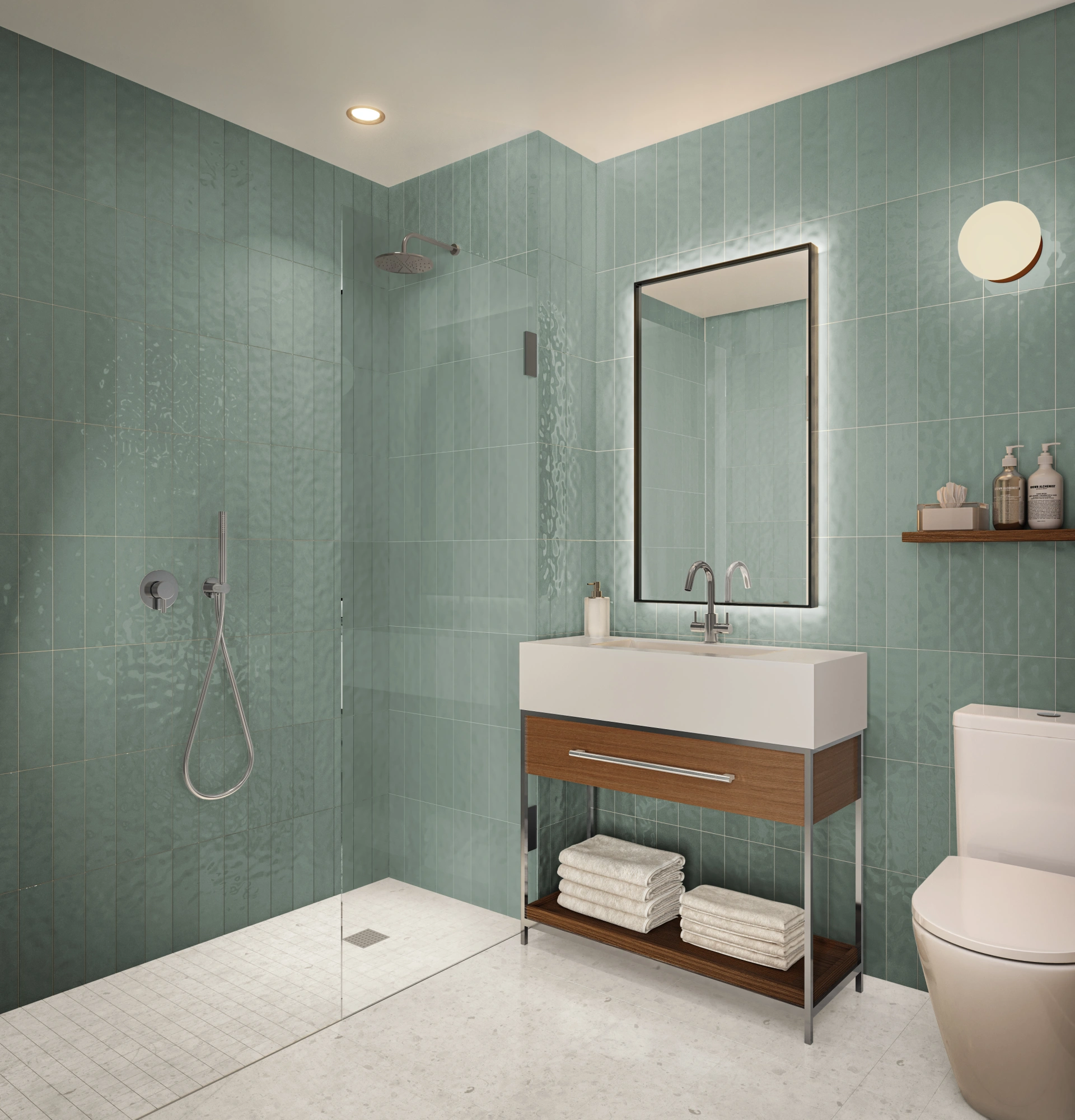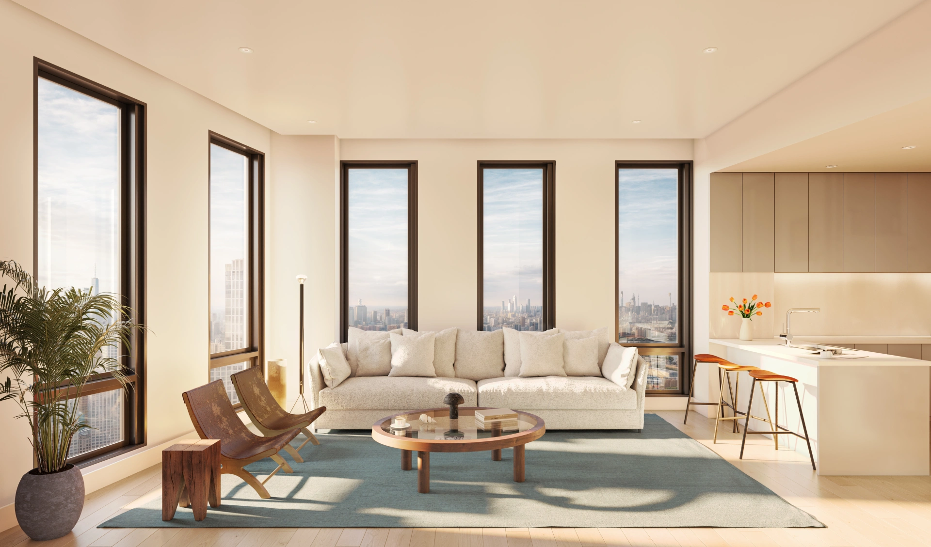 Comfort, ease, and quiet luxury in every room. Calming bathrooms with walk-in showers and custom back-lit mirrors. Spacious bedrooms with oversize windows and many with walk-in closets.