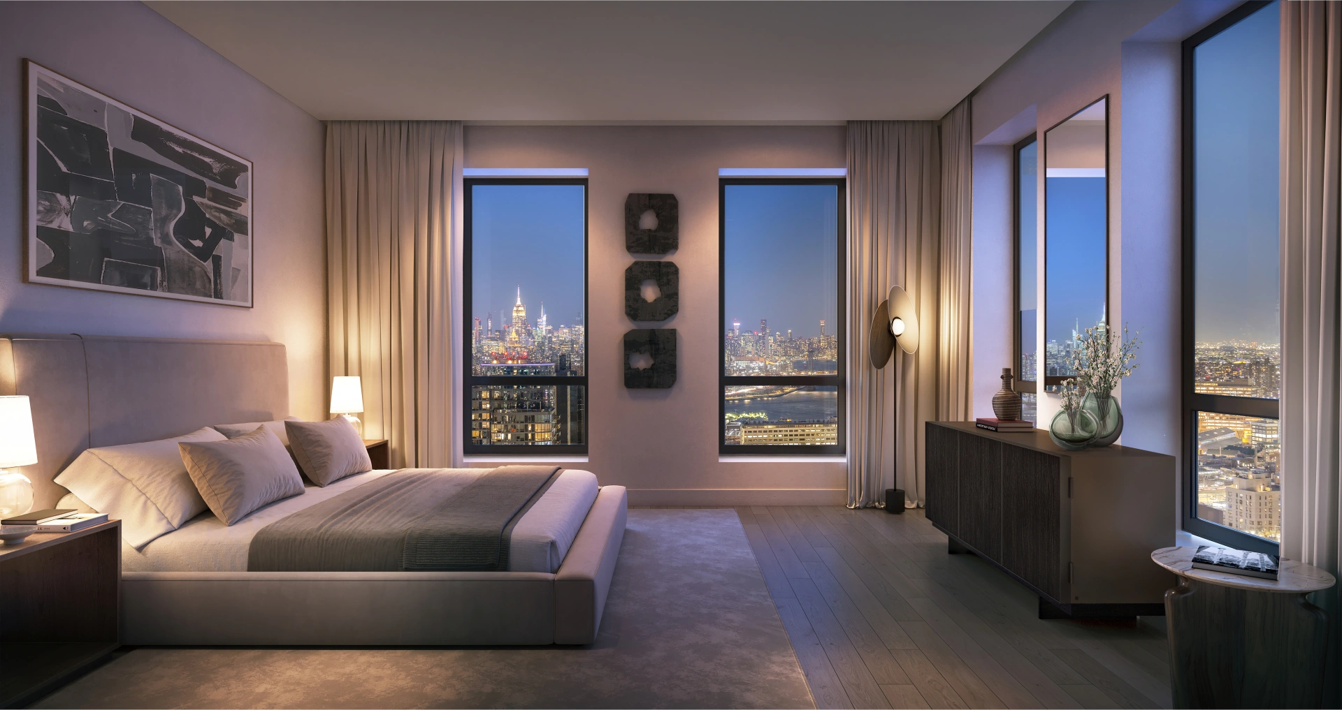Expansive views in every direction frame Brooklyn’s skyline, the Manhattan lights, the bridges across the river, and the Statue of Liberty in the Harbor.